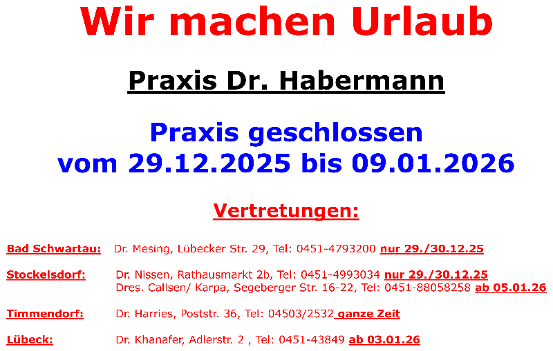 Unsere Praxis ist eine Bestellpraxis, deshalb möchten wir Sie bitten, jeden Termin vorher mit uns abzustimmen.